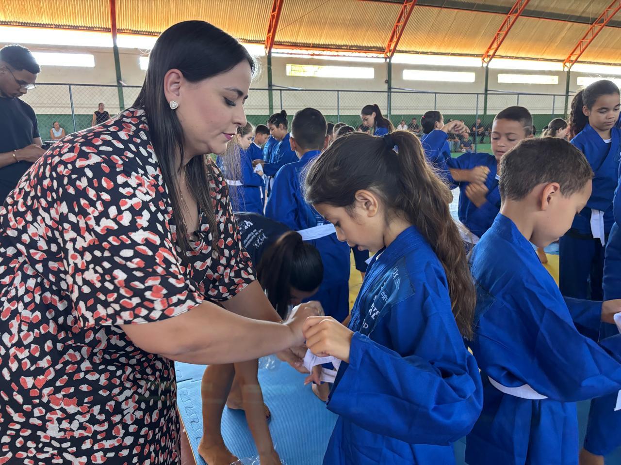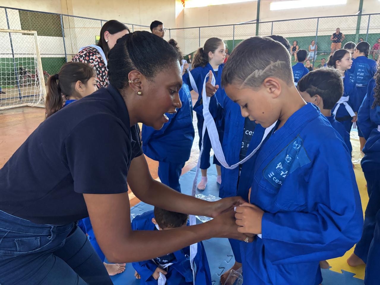 O Projeto Esporte Total realizou, nesta quinta-feira (11), a entrega de uniformes esportivos a 100 alunos da Rede Municipal de Ensino atendidos pela modalidade de Judô em Batayporã. A ação aconteceu no Ginásio Poliesportivo Frederico Kruger e reuniu crianças, familiares e equipe técnica.