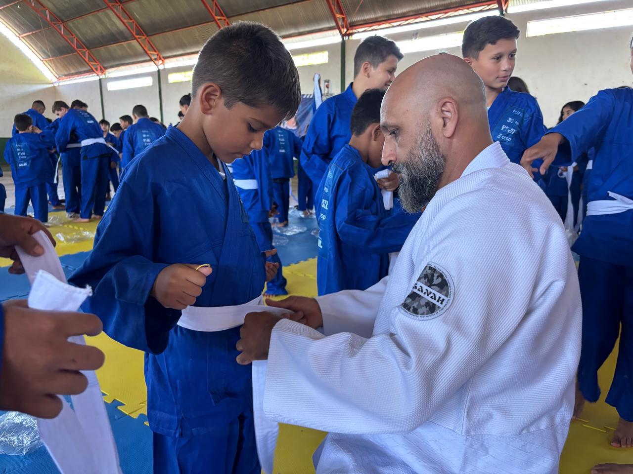 Foram entregues kits completos contendo kimonos, faixas, camisetas de treino e chinelos — materiais que irão fortalecer o desenvolvimento das atividades conduzidas pelo professor Devanir Oliveira, da organização Ajudôu.
