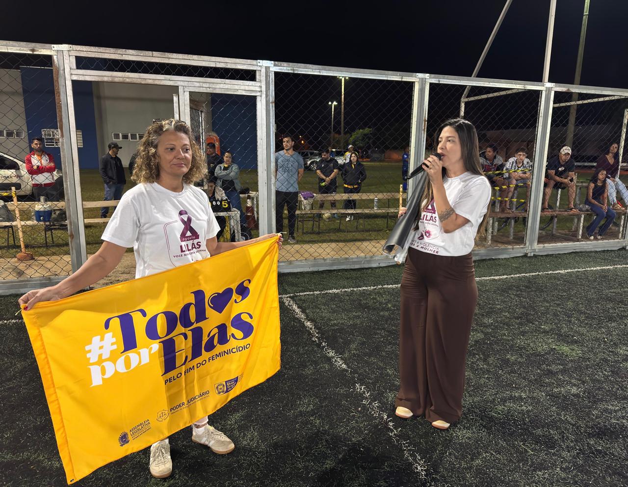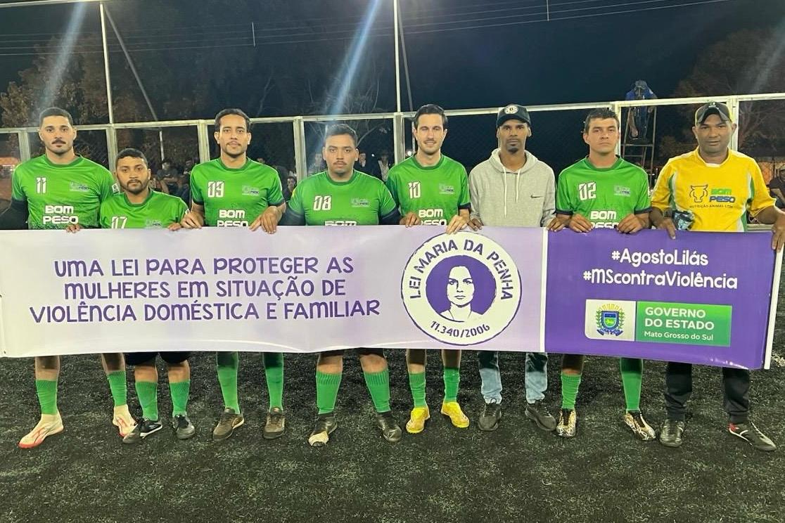 A Campanha Agosto Lilás, de combate à violência contra a mulher, ganhou espaço durante os jogos da Copa Comércio de Batayporã, realizados na noite da última quinta-feira (07), na Arena Paulo Takashi Itada. A ação integrou esporte e cidadania com a proposta de sensibilizar o público masculino sobre a importância do enfrentamento à violência de gênero.