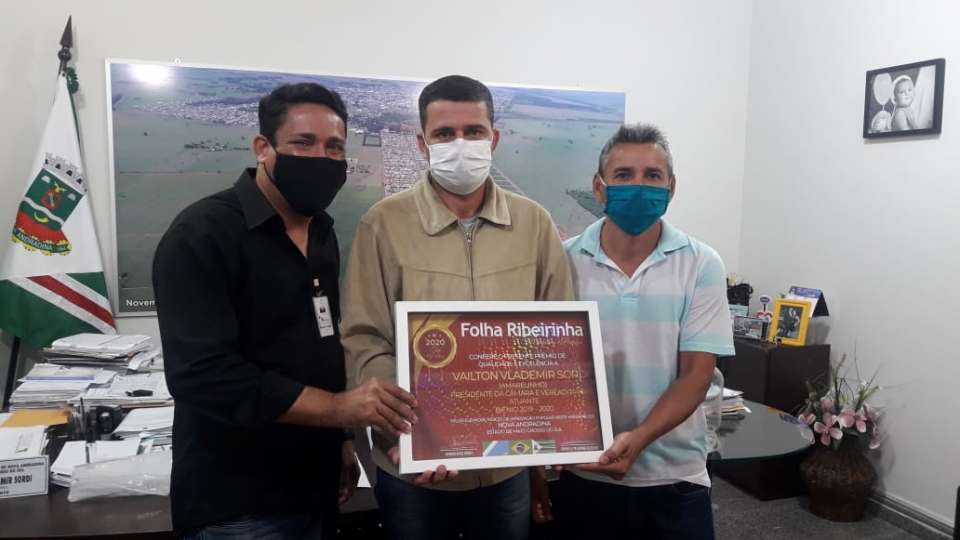 O vereador Vailton Vlademir Sordi “Amarelinho”, recebeu em seu gabinete na manhã de segunda-feira (25), o prêmio de Vereador Mais Atuante. A pesquisa de opinião pública foi realizada pela empresa Folha Ribeirinha Marketing e Pesquisas, de Presidente Epitácio –SP. O prêmio foi entregue pelos diretores da empresa Denner Régis e Amaury Junior.