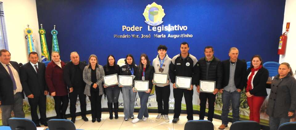 Os atletas Lorena Fernanda de Paula e Ana Clara Souza Fernandes, Guilherme Ferreira da Silva e Gabriel da Silva Paulino, foram agraciados com uma Moção de Aplausos e Parabenização, da Câmara Municipal de Vereadores, pelos seus desempenhos nos Jogos Escolares da Juventude do Mato Grosso do Sul (Prodesc).