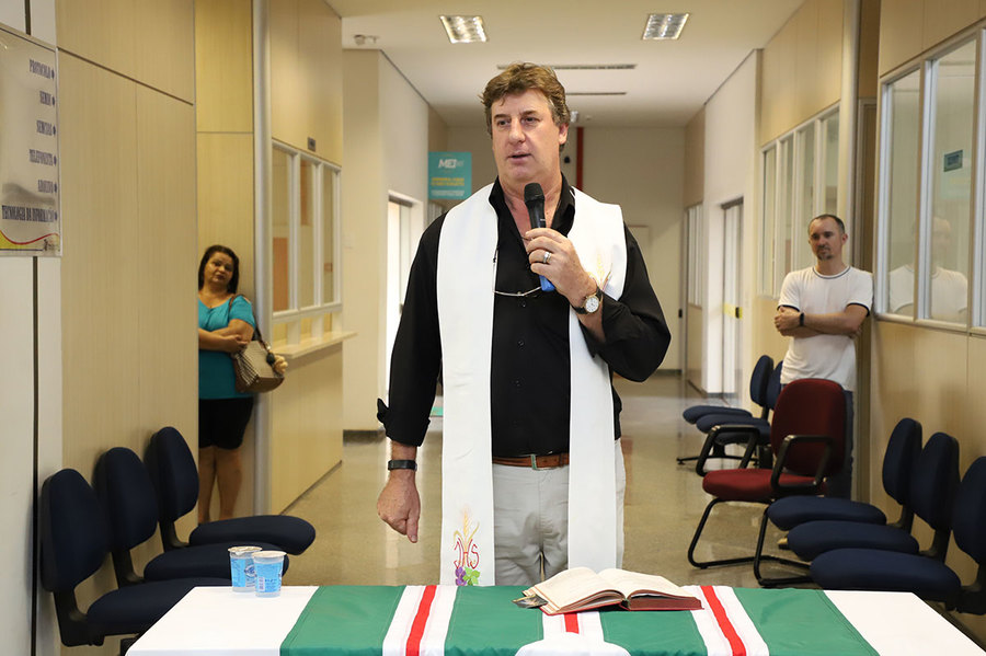 Em Ação de Graças pelo ano de 2019, os servidores da Prefeitura, juntamente com o prefeito Gilberto Garcia e seu secretariado, reuniram-se no hall de entrada do Paço Municipal, na manhã desta quinta-feira (19), para participar uma celebração religiosa.