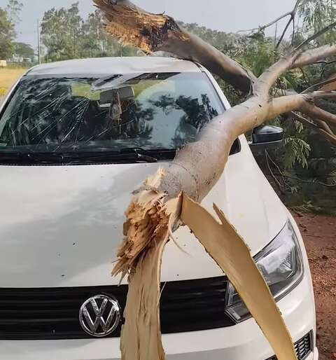O Vale do Ivinhema Agora acompanhou várias ocorrências pelo município, mostrando uma árvore que caiu sobre um carro e danificou o veículo.
