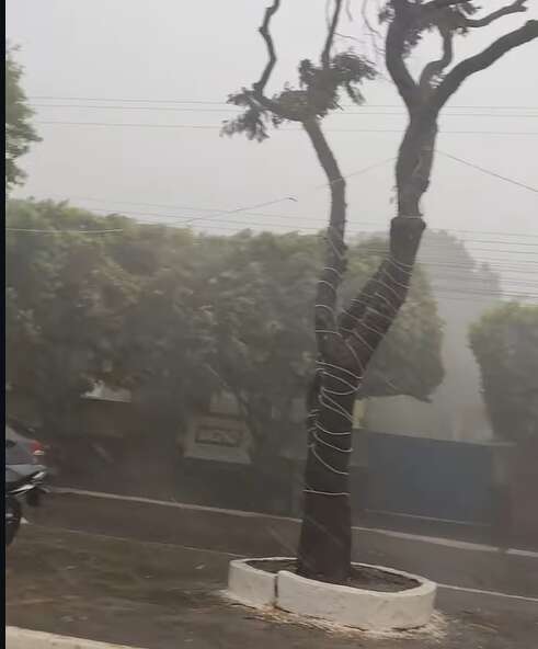 O tempo severo veio acompanhado de grande volume de água e ventos intensos, que derrubaram árvores e estruturas de edificações em vários pontos da cidade.