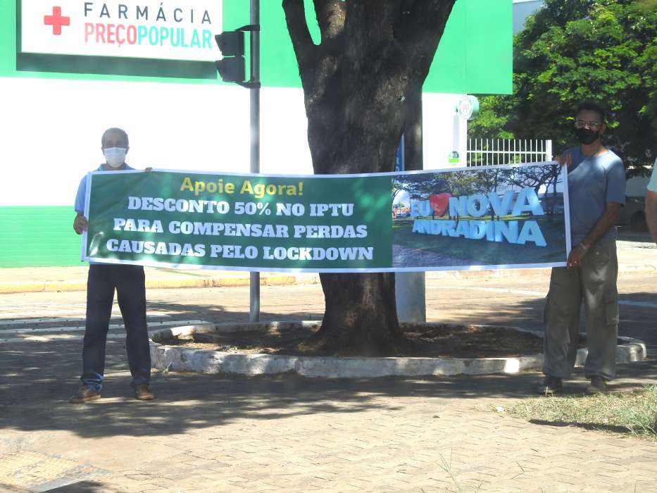 Bolsonaristas de Nova Andradina (MS) passaram a manhã deste sábado (03/04), se revezando com uma faixa pedindo apoio da população para propor descontos no IPTU.