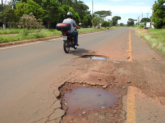 Os buracos existentes no prolongamento da MS-134, denominada rodovia Alcides Sãovesso em Batayporã (MS) é um risco eminente para os transeuntes.