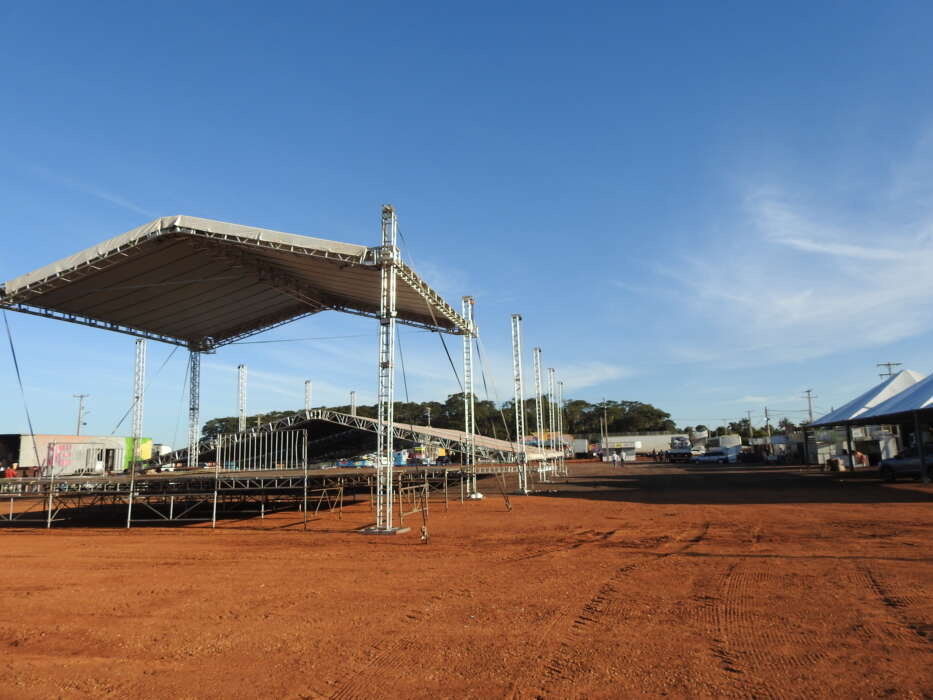 Palco ainda sendo montado e onde vai acontecer a apresentação do cantos Loubet (Foto: Anaurelino Ramos)
