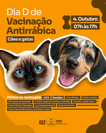 Secretaria Municipal de Saúde reforça a importância de os tutores levarem seus animais de forma segura: cães devem estar em guia, coleira e, em caso de agressividade, com focinheira. Os gatos precisam ser transportados em caixas apropriadas. Importante ressaltar que a retirada de doses para aplicação domiciliar não será permitida, medida necessária para garantir o controle e a segurança da imunização.