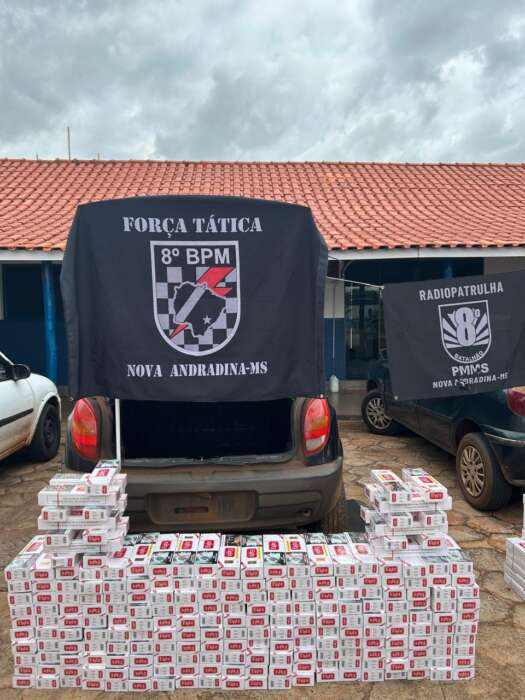 Policiais da Força Tática da Polícia Militar de Nova Andradina (MS) aprenderam um carregamento mais de mil pacotes de cigarros contrabandeados.