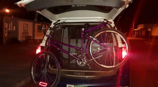 Um dos jovens estava com uma bicicleta e após serem abordados, em checagem no sistema de pesquisa SIGO pelo número de série do quadro, foi constatado um registro de ocorrência na data de 12/11/18, onde relatava que a bicicleta foi subtraída na praça das águas.