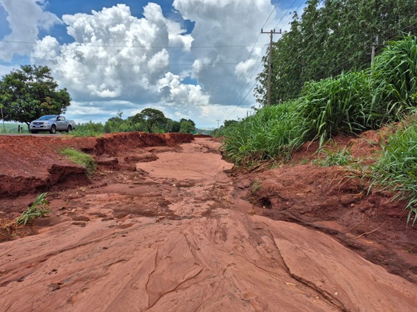 Durante as vistorias, foram identificadas valas com cerca de 10 metros de largura e até dois metros de profundidade às margens da rodovia, além da exposição de tubulações de esgoto, que ficaram vulneráveis a rompimentos.