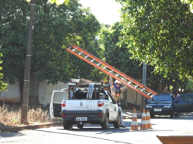 A empresa responsável pela manutenção de lâmpadas queimadas e outros tipos de serviços da rede pública está em Nova Andradina (MS), efetuando reparos da rede.