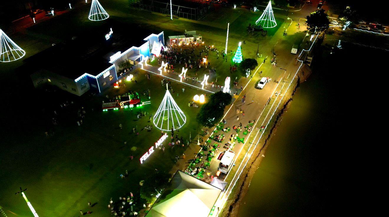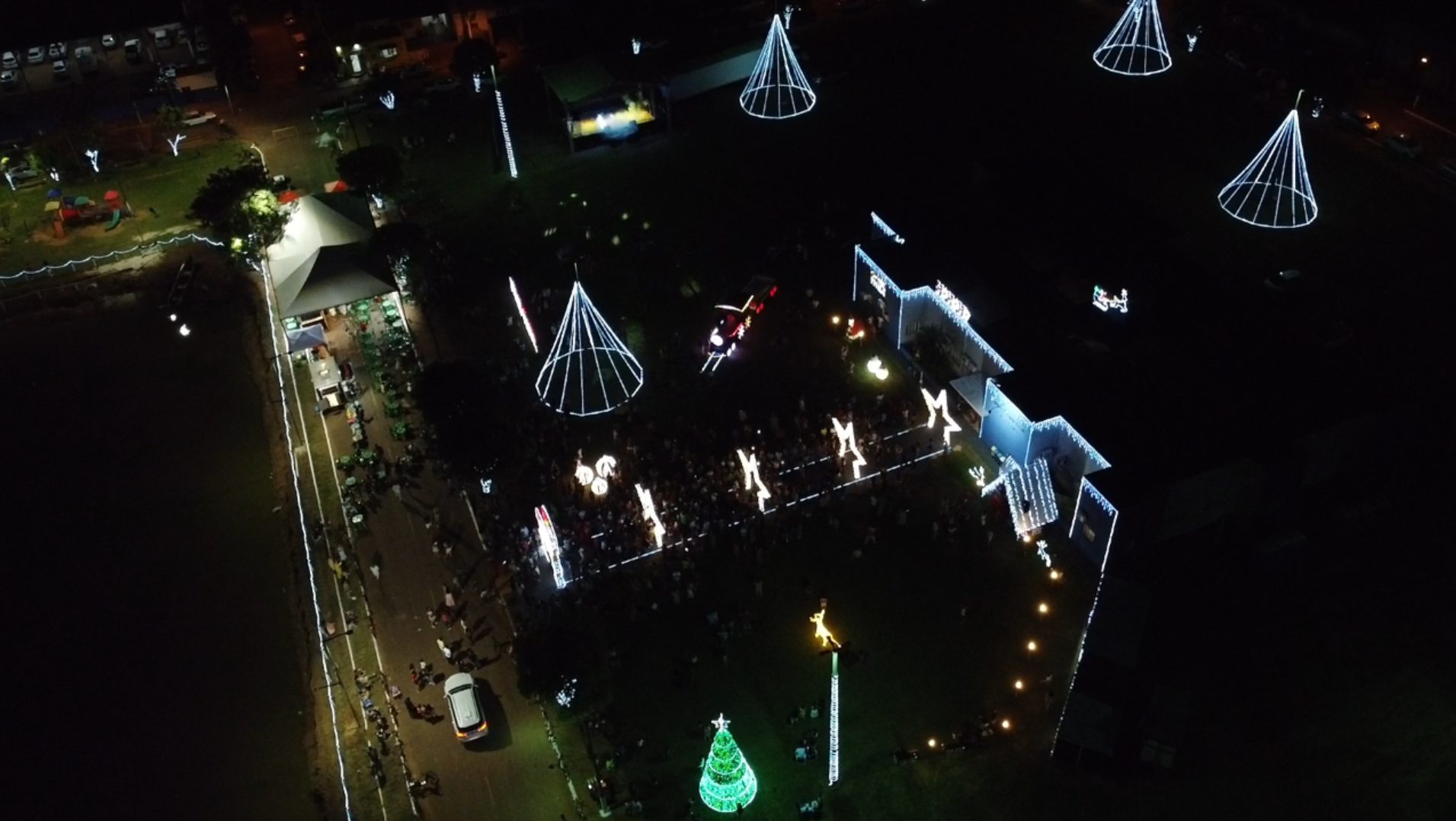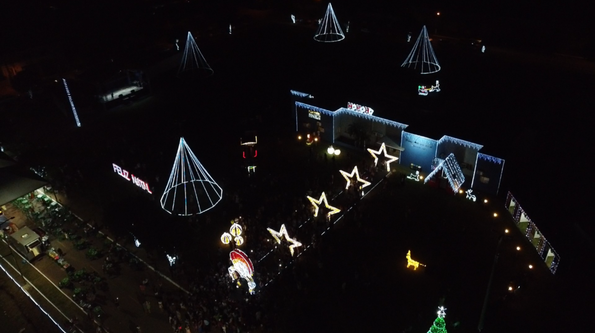 Neve e chegada do Papai Noel destacaram inauguração da decoração de Natal em Batayporã