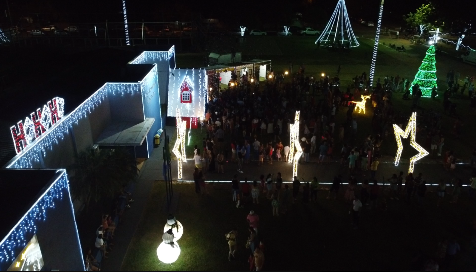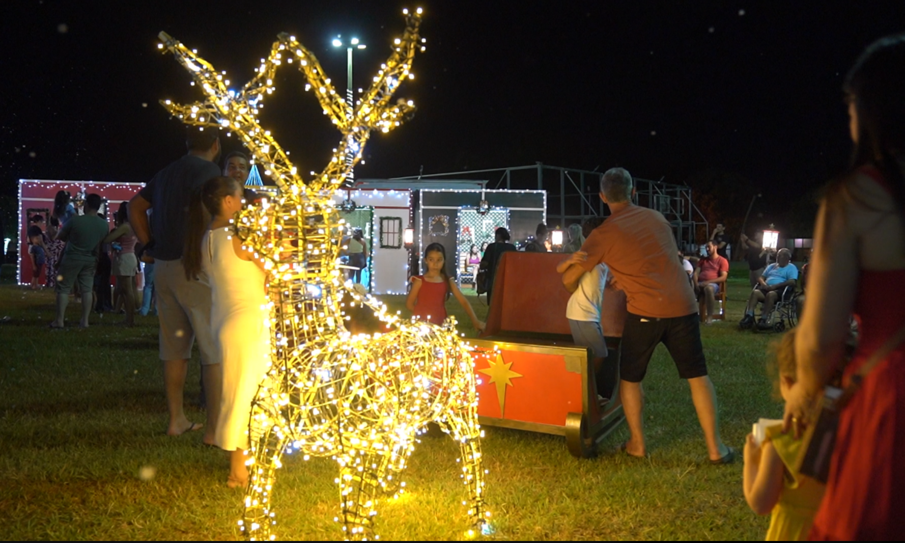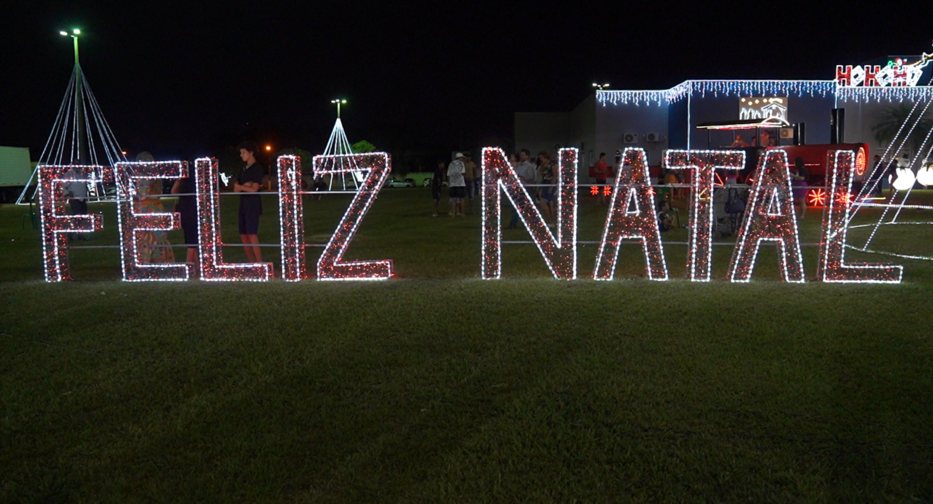 Neve e chegada do Papai Noel destacaram inauguração da decoração de Natal em Batayporã