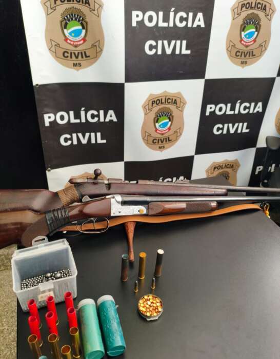 Na residência do gerente, durante buscas acompanhadas pela esposa dele, foram encontradas duas armas de fogo e munição, além de diversos insumos utilizados para recarga de munições, como pólvora, chumbo, espoletas e cartuchos. A esposa do gerente informou não possuir documentação referente às armas de fogo.