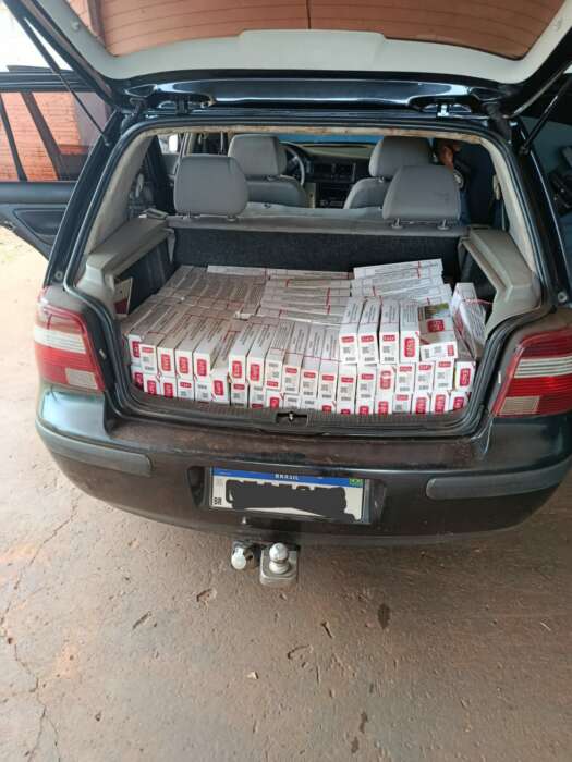 Na vistoria no interior do veículo e no porta-malas, foram encontrados 255 pacotes de cigarros de origem paraguaia, sendo 130 pacotes da marca Eigth e 125 pacotes da marca Fox, caracterizando contrabando.