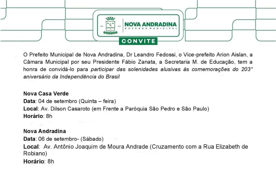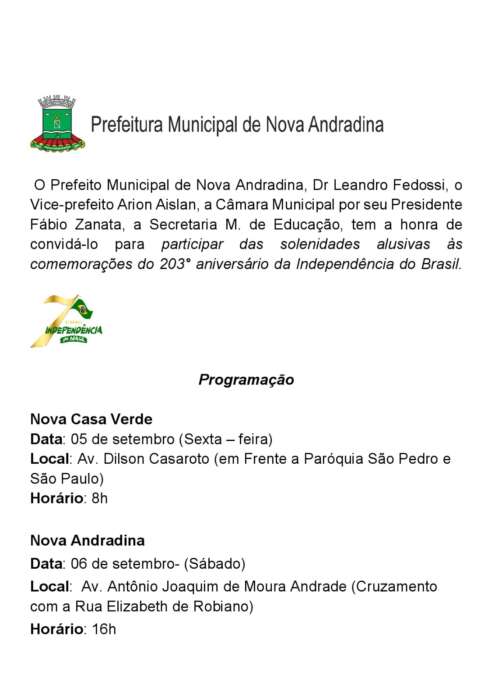 Esse ano não foi divulgado nada sobre as tratativas desta comemoração cívica. Quando perceberam os convites já estavam sendo entregues. Mesmos que fosse online.