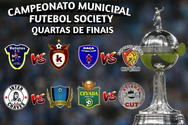 As oito equipes classificadas para as quartas-de-finais do Campeonato Municipal de Futebol Society 2018 começam a duelar nesta quarta-feira, dia 19 de setembro, no Estádio Municipal Luís Soares Andrade – Andradão. Passam para a semifinal, as 4 equipes que vencerem os seus jogos.