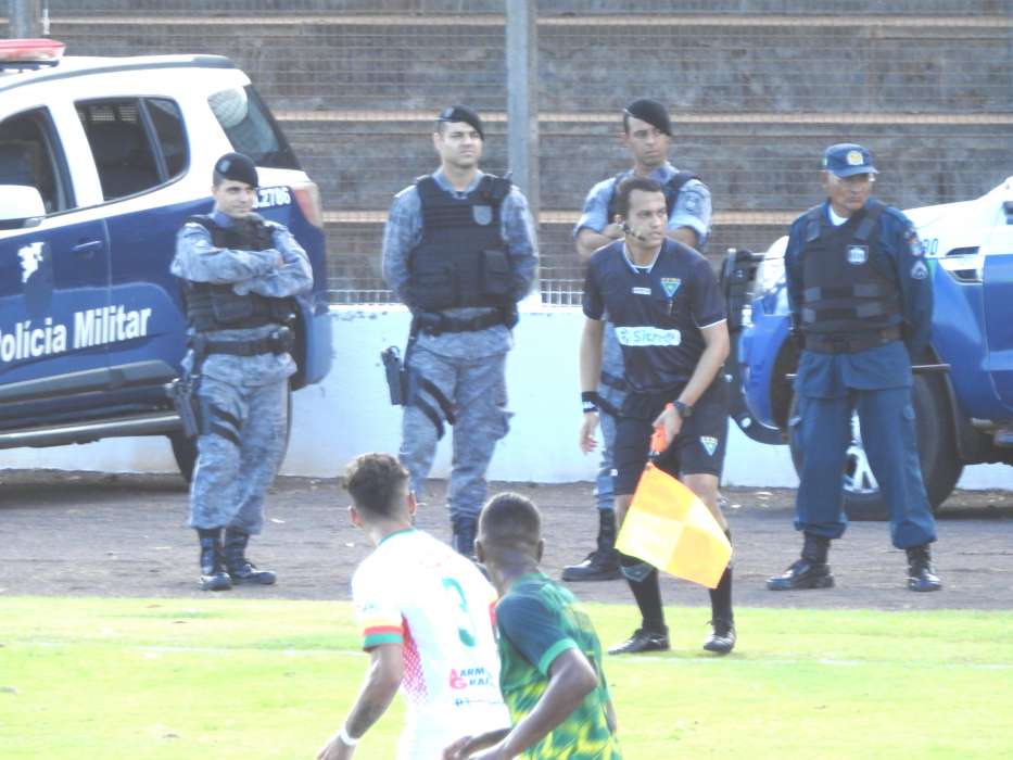 Major Vieira, comandante da Força Tática, assiste com seus comandados a partida entre Cena e Pontaporanense, em jogo que ficou no 0x0 e sem nenhum tipo de ocorrência