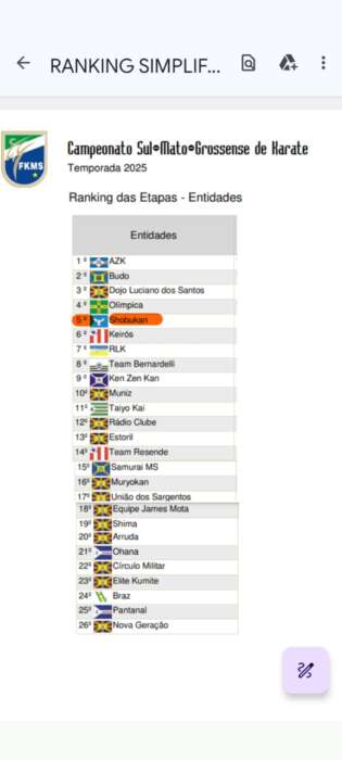 Com apenas 5 anos de atividade em Batayporã e 2 anos na Nova Casa Verde a Shobukan se classifica em 5° lugar no Ranking Geral do Karatê entre as 26 Associações filiadas na FKMS – Federação de Karatê de Mato Grosso do Sul, entidade oficial filiada a CBK – Confederação Brasileira de Karatê ligada ao COB – Comitê Olímpico Brasileiro.