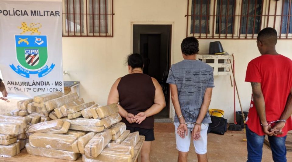 Na manhã deste domingo (17), a Polícia Militar de Anaurilândia (MS) prendeu dois homens e uma mulher, ocupantes de um veículo que transportava 119 tabletes de maconha.