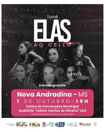 Um sexteto de violoncelos formado exclusivamente por mulheres estreia nesta quarta-feira (1º) em Nova Andradina, trazendo uma experiência musical inédita e envolvente com a turnê “Elas ao Cello”.