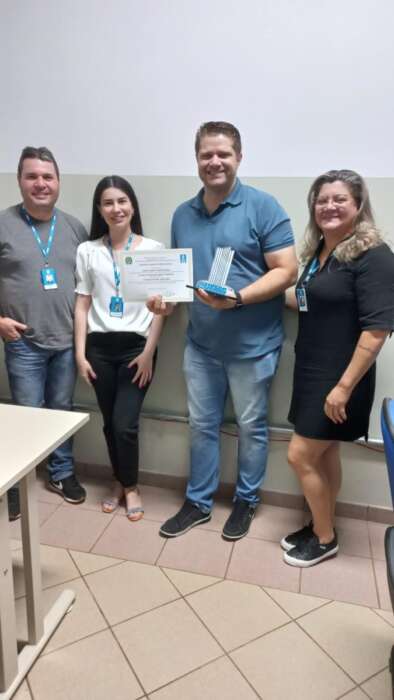 O ato de entrega da certificação ao acadêmico, agora especialista em gestão, contou com a presença da Professora. Dra. Luciana Codognoto da Silva e o Prof. Dr. Fabiano Greter Moreira, representando todos os docentes que participam do projeto da especialização no campus.