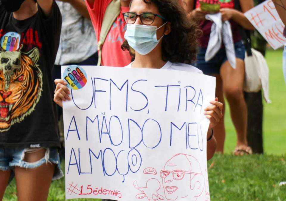 Estudantes da UFMS (Universidade Federal do Mato Grosso do Sul) organizaram manifestação na manhã do dia (30) em frente a reitoria da cidade universitária contra o aumento das tarifas do RU (Restaurante Universitário).