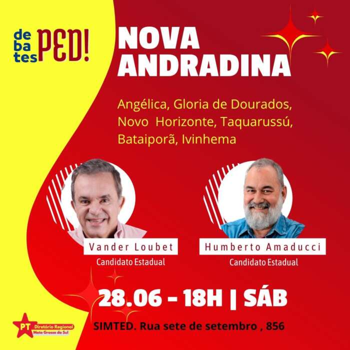 Militantes e filiados do Partido dos Trabalhadores debatem neste sábado a partir das 18h o Processo de Eleição Direta (PED), em Nova Andradina (MS).