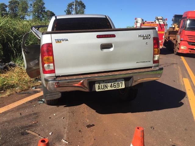 Na camionete Hilux com placas de Brasilândia, que era ocupada por duas pessoas, apenas o condutor precisou de atendimento médico e socorro. Eles ficaram presos as ferragens.
