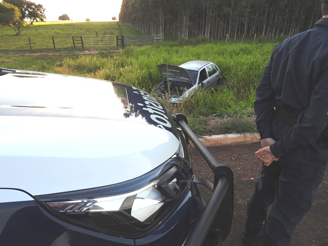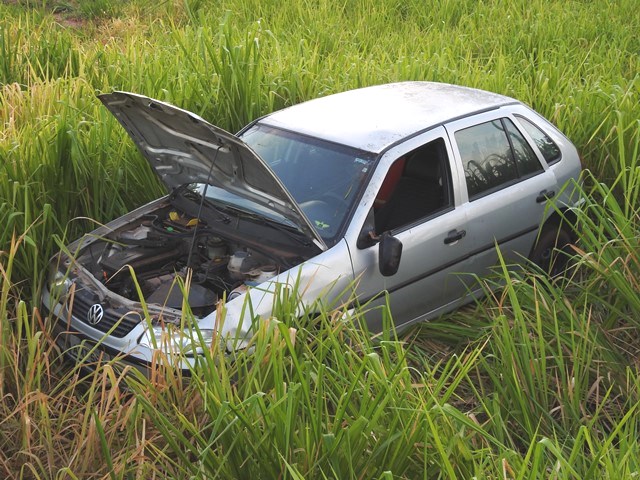 Um veículo VW Gol com placas de Nova Andradina (MS) saiu da pista no final da madrugada deste domingo (16), na MS-134, próximo do Haras Pub.